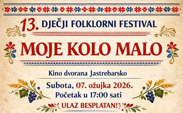 U subotu, 7.ožujka održat će se tradicionalni dječji folklorni festival u organizaciji KUD-a Desinec “Moje kolo malo”F Festival počinje u