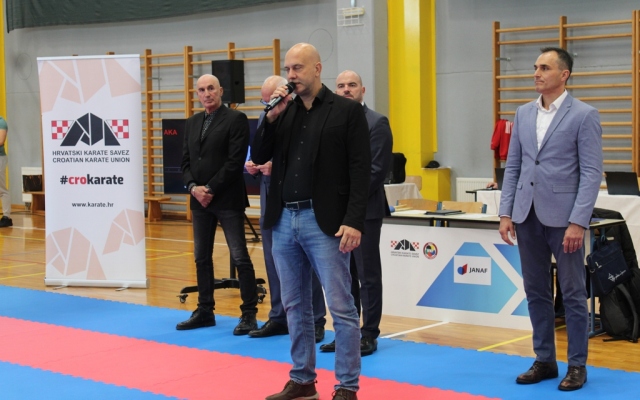 Prvenstvo Hrvatske u karate borbama za mlađe kategorije u Jastrebarskom otvorio je Tomislav Družak, posebni savjetnik ministra turizma i sporta.