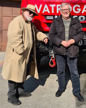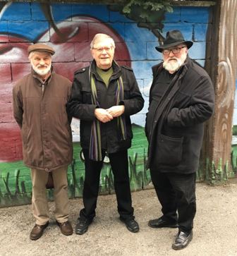 Trojka ispred Kazališta “Trešnja” 50 godina nakon premijere “Svebora”, veljača 2022